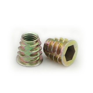 Применяется в основном в мебельном производстве при сборке различных деталей. Служит для перехода с внутренней резьбы на наружнюю. Изготовлена из стали с оцинкованным покрытием. Муфта или футорка металлическая представляет собой переходное соединение (фитинг), имеющее внутреннюю резьбу и внешнюю резьбу или насечку в виде колец. Используется для перехода с внутренней резьбы на наружную в производстве мебели, для регулируемых опор, для штоков, а также для замены поврежденной резьбы. Имеет ограничительную манжету и, в большинстве случаев, метрическую внутреннюю резьбу. Для работы необходимо правильно подобрать два параметра – внешний диаметр и внутренний диаметр. Имеет типоразмеры: 6х10, 6х13, 8х14, где первая цифра указывает внутренний диаметр, а вторая – длину изделия. Состав метиза: оцинкованная сталь. Применение футорки в производстве предметов мебели позволяет прочно и неоднократно соединять детали из древесины различных пород, из МДФ, ДВП, ДСП.