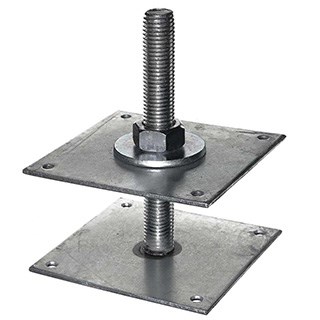 - анкер устанавливается под несущую балку или опорную колонну, опорная пластина крепится винтами к основанию поверхности, которая подвергается регулировке;